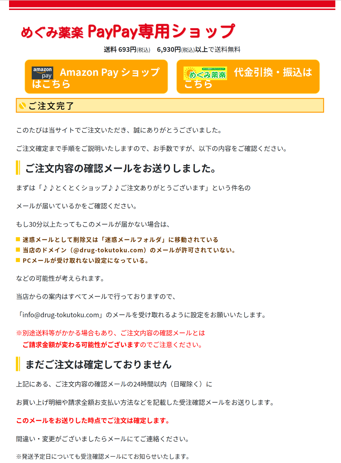 絶対に画面を閉じないでください - ④が表示された時点で注文が確定します